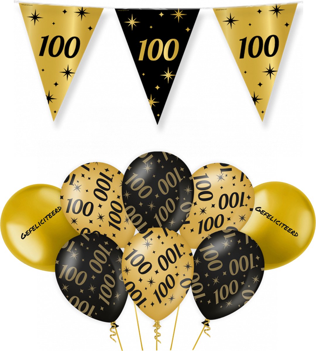 Vier een eeuw aan herinneringen en maak van deze bijzondere gelegenheid een onvergetelijk moment. Bestel vandaag nog jouw 100 Jaar Feestpakket Zwart/Goud (Classy) en laat de feestvreugde stralen!