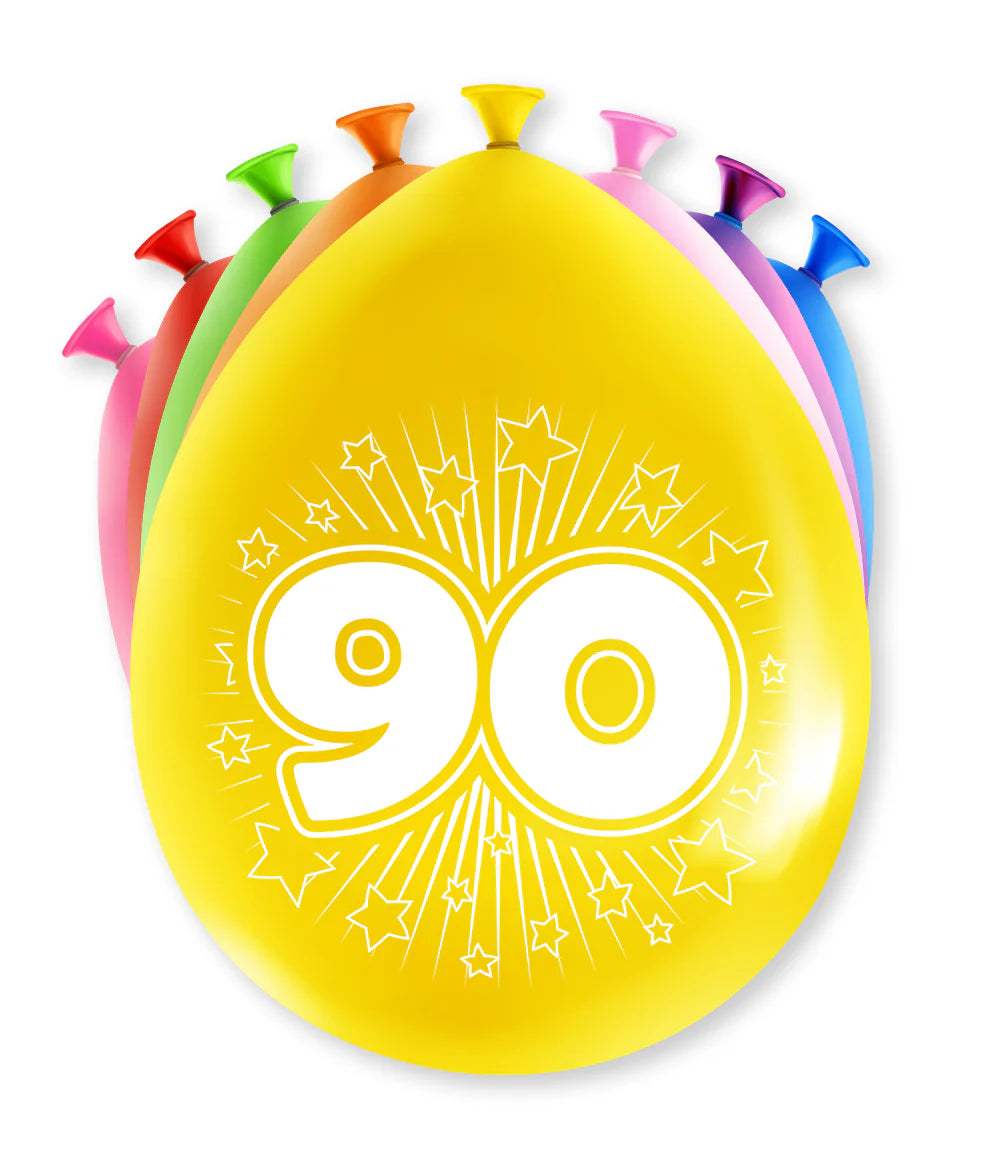 Verpakkingsinhoud: Ballonnen 90 Jaar Hoera 30 Centimeter 8 Stuks