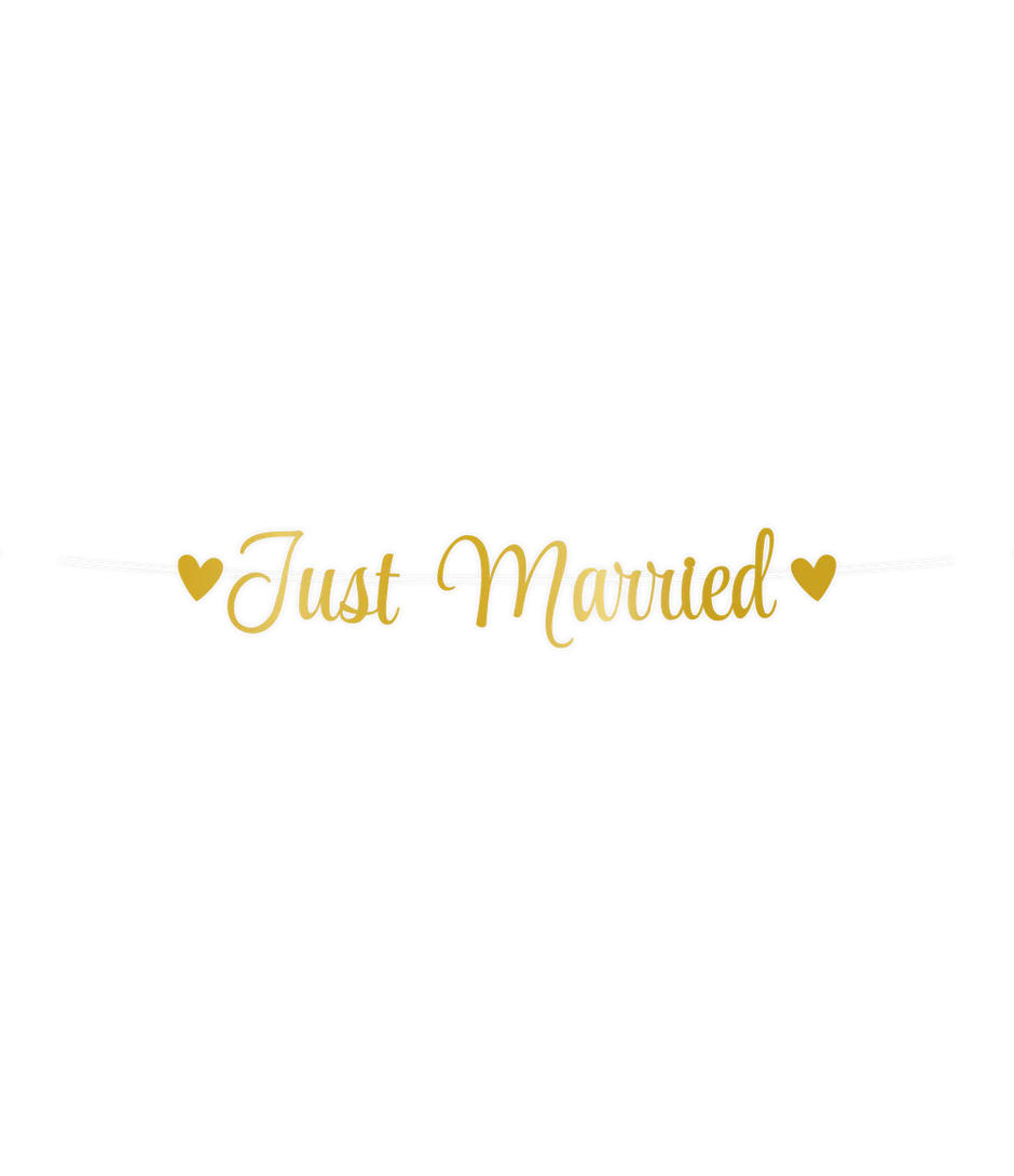 Deze slinger met het "Just Married" thema is de ideale versiering voor een huwelijksfeest. Door de gebruikte kleuren en het vrolijke design vallen deze slingers extra goed op! De slingers zijn gemaakt van papier en hebben een lengte van 2,5 meter.