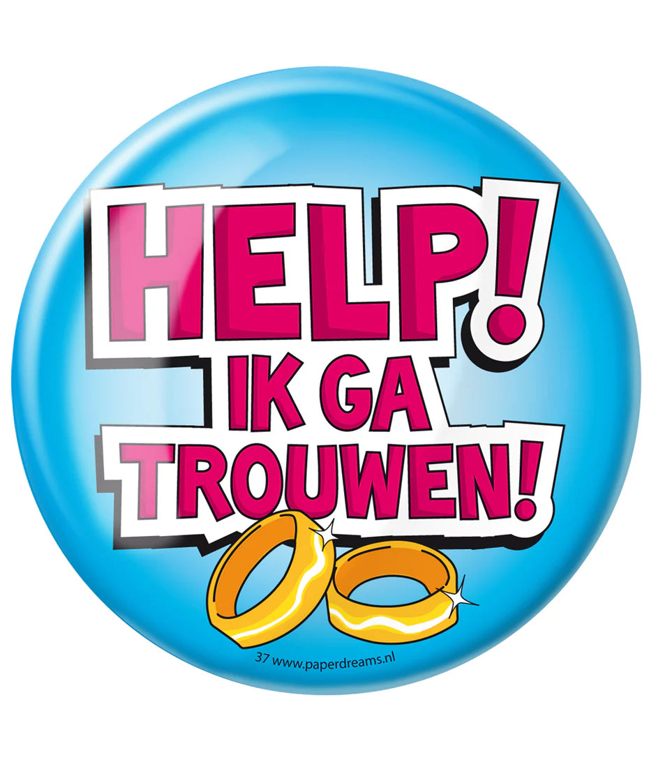 Verpakkingsinhoud: Button Help Ik ga Trouwen 10,2cm