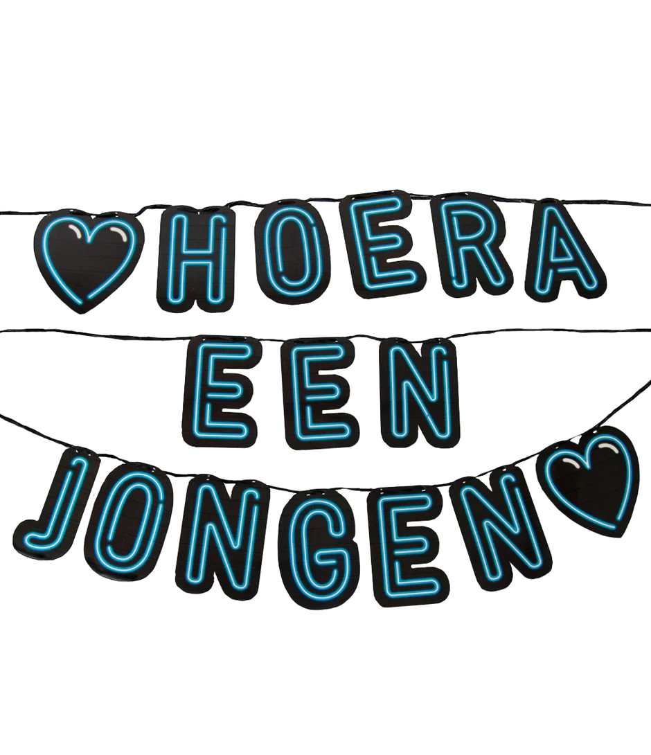 Verpakkingsinhoud: Geboorte Letterslinger Hoera een Jongen Neon 5m