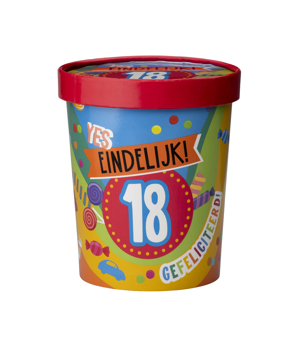 De vrolijke Snoepbakjes zijn een echte eye catcher in de winkel. Mede door het leuke design is deze candy bucket 18 jaar erg leuk om te krijgen. De snoepemmers zijn gemaakt van karton.