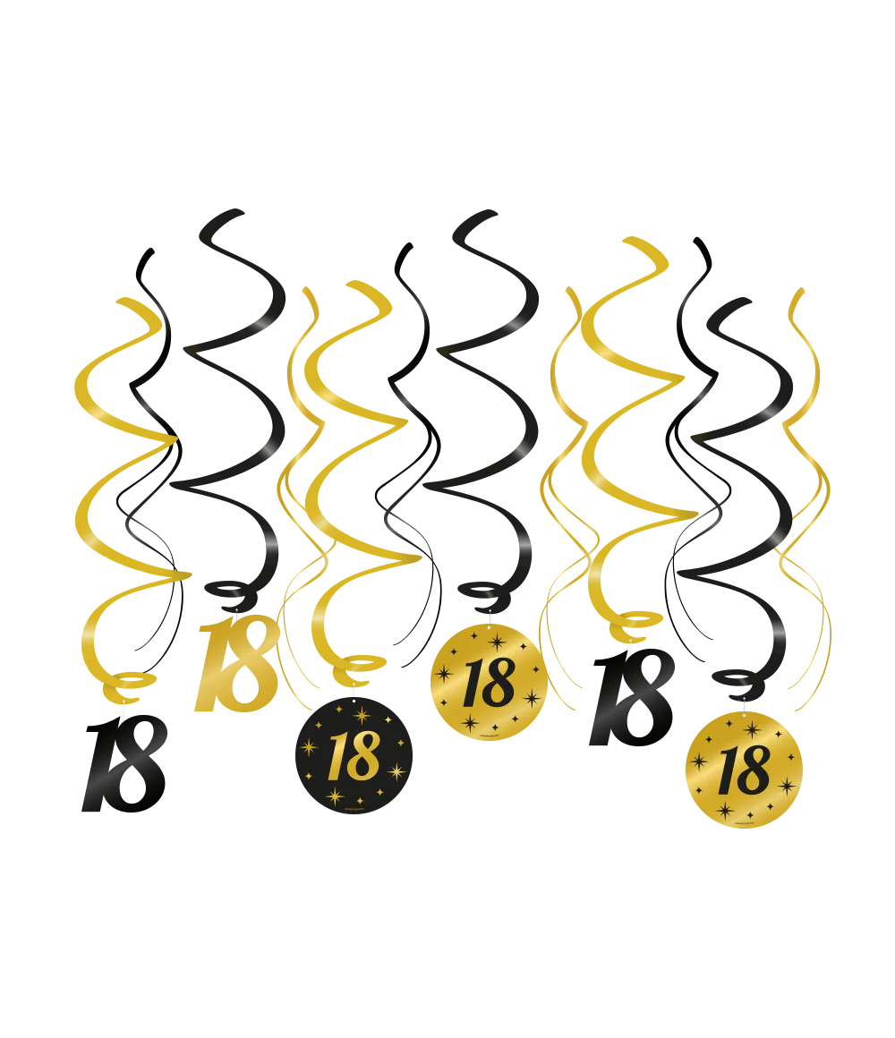 Een luxe feestje kan niet zonder de Zwart/goud swirls 18, de Swirls maken het feestje echt af! Deze unieke zwart gouden swirls zijn gemaakt van plastic en papier en zijn ongeveer 70 centimeter lang.