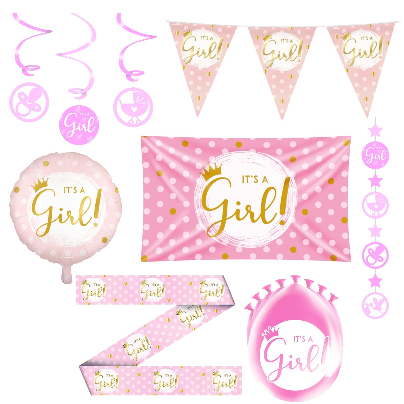 Of je nu het huis van de ouders wilt versieren, een tuinfeest organiseert of een kraambezoek extra speciaal wilt maken – dit "It's a Girl" versiering pakket zorgt voor een feestelijke, warme en liefdevolle sfeer.