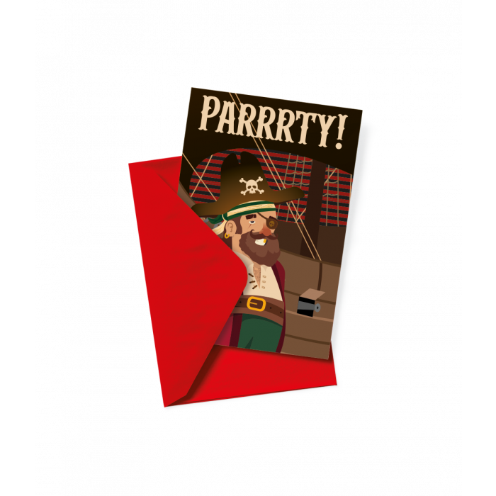Iemand uitnodigen voor een kinderfeestje kan perfect met de leuke 'Piraat' uitnodigingskaarten! - Uitnodigingskaarten Piraat 6 Stuks Inclusief Envelop