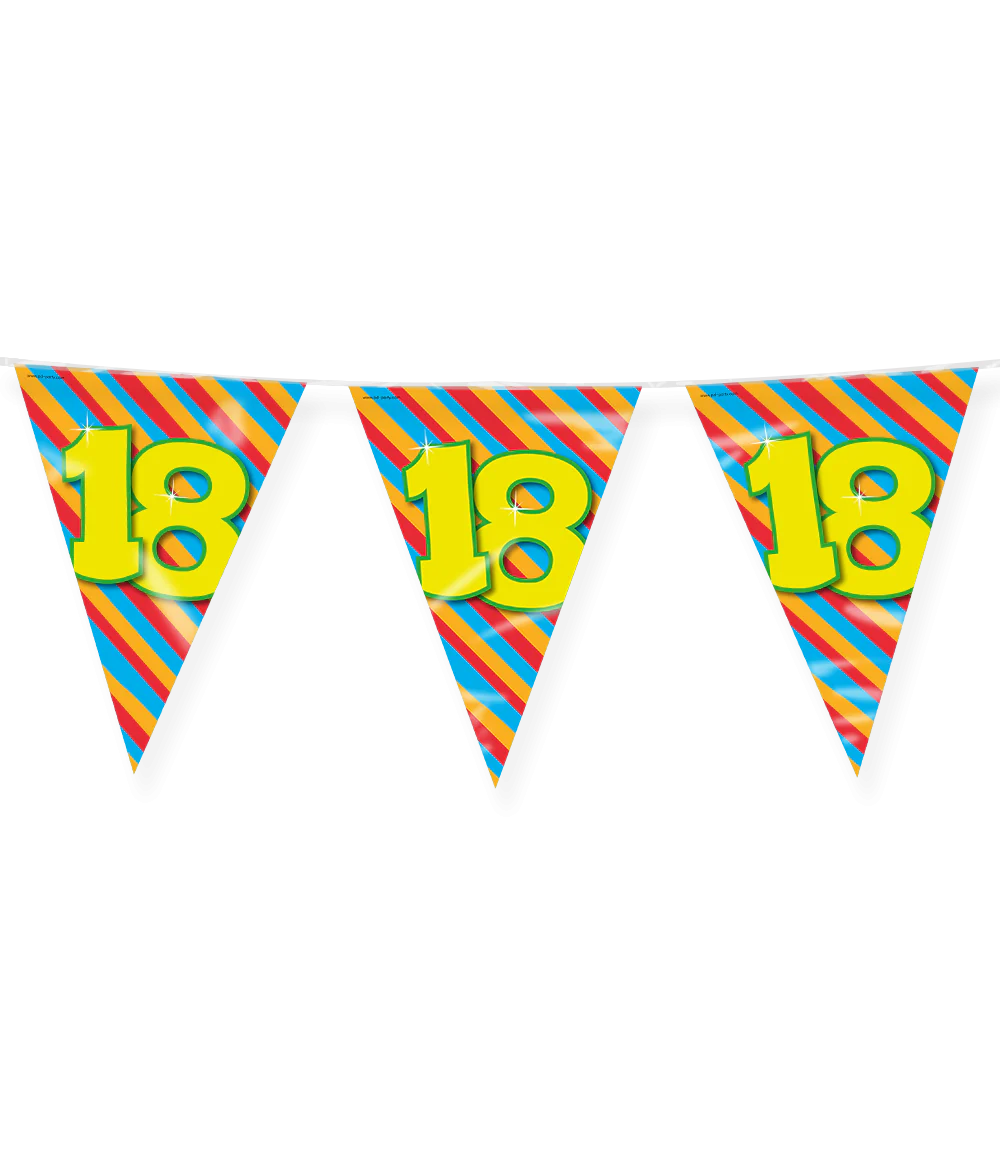 Maak jouw 18e verjaardag compleet met deze vlaggenlijn 18 jaar gekleurd! Bestel nu en zorg voor een onvergetelijk feest.
