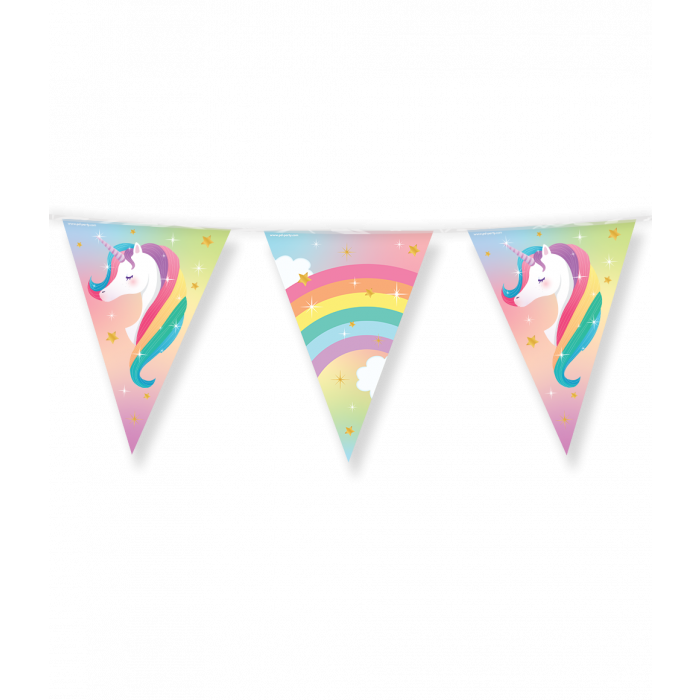 Een kinderfeestje kan niet zonder vlaggetjes en als je deze Vlaggenlijn Eenhoorn koopt dan haal je direct een vlaggenlijn met een uniek thema in huis! De vlaggetjes zijn gemaakt van folie en de vlaggenlijn is 10 meter lang.