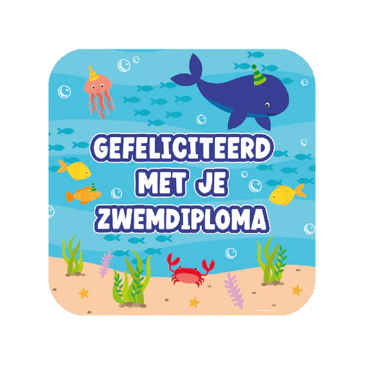 Deze grote huldeschilden zijn met een formaat van 50 cm bij 50 cm de perfecte decoratie voor aan deuren en ramen. Het huldeschild met het thema Zwemdiploma is ideaal voor het vieren van een zwemdiploma en kan zowel binnen als buiten worden gebruikt. Het is eenvoudig op te hangen met plakband of een touwtje, aangezien het geen sticker is. Perfect voor een feestelijke gelegenheid zoals het behalen van een zwemdiploma!