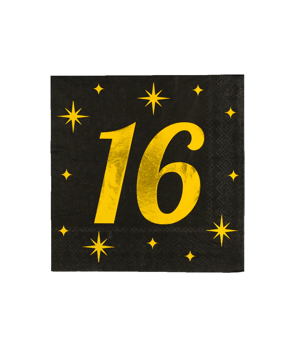 Deze 16 Jaar Servetten Zwart Goud 16st zijn niet alleen praktisch, ze zijn ook nog eens erg leuk om een tafel feestelijk te decoreren bij een 16e verjaardag. Deze servetten (17 x 19cm) zit verpakt per 16 servetten.