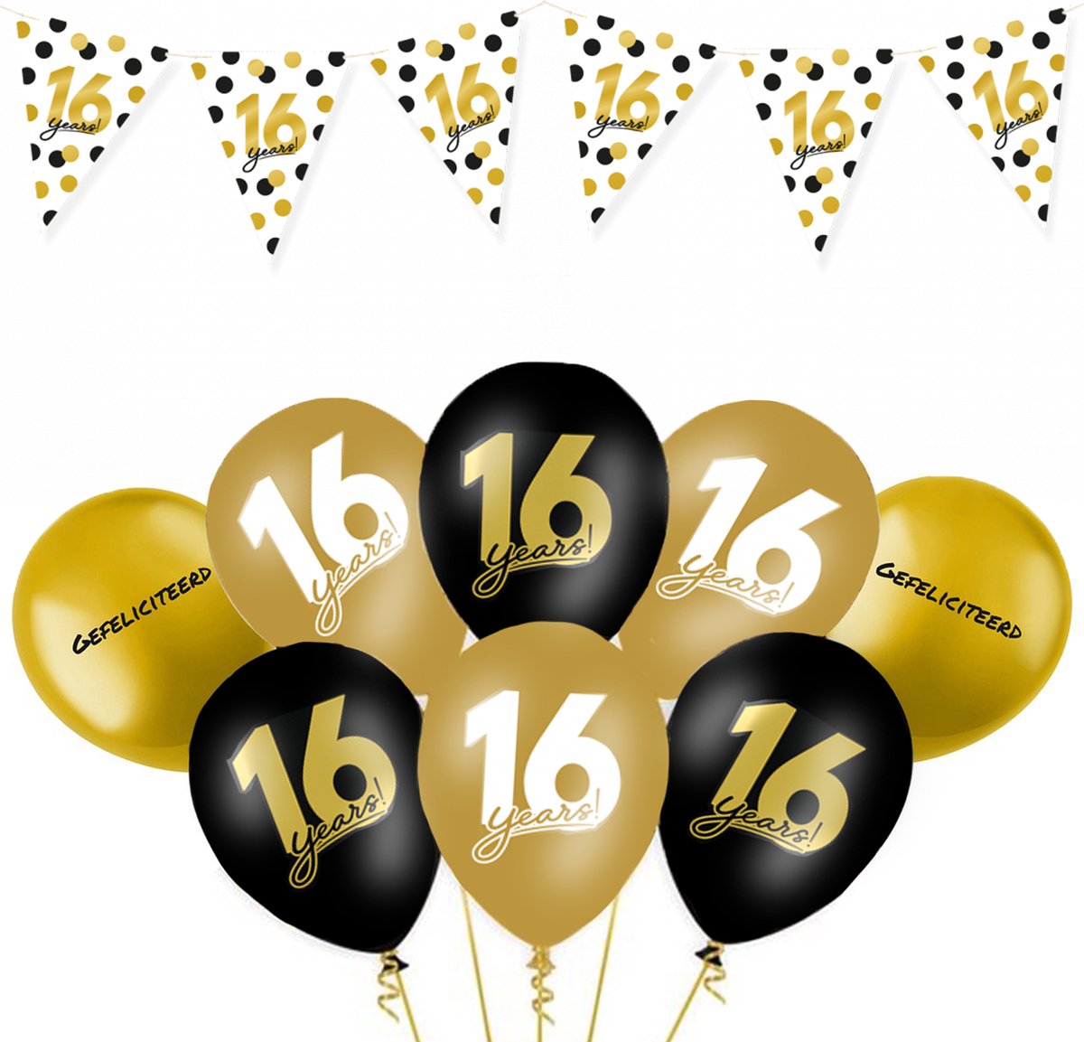 Maak een onvergetelijke indruk met het 16 Jaar Feestpakket Zwart/Goud (Classy)! Dit luxe pakket bevat alles wat je nodig hebt om een 16-jarige mijlpaal in stijl te vieren. Of je nu een groot feest organiseert of een intieme setting creëert, dit feestpakket geeft een elegante en feestelijke uitstraling aan elk jubileum.