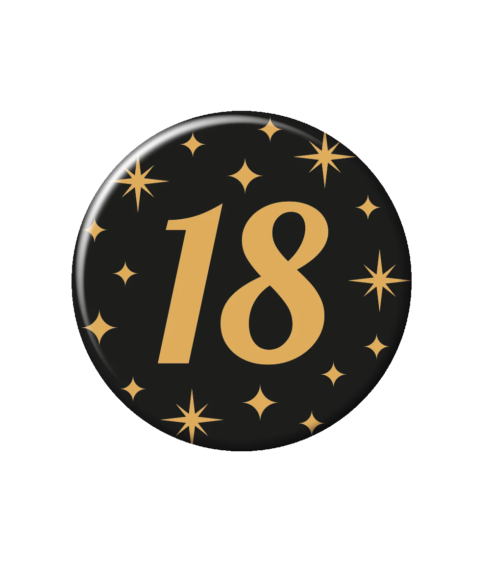 Feestelijke kleine buttons in classy stijl met een diameter van 5,5 cm. Classy party badge - 18 is het perfecte item om te dragen op een 18e verjaardag.