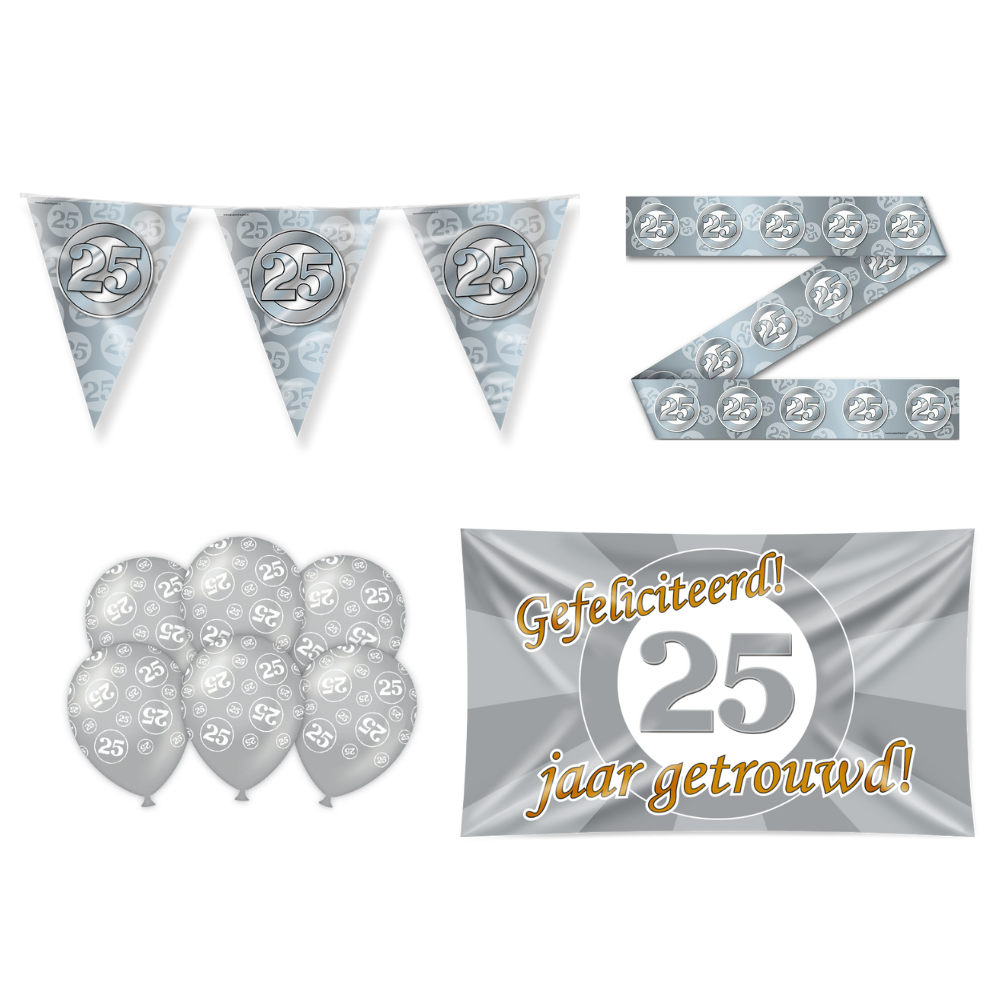 Bestel nu het 25 Jaar Getrouwd Versiering Pakket Zilver XL en maak van dit jubileum een dag om nooit te vergeten!