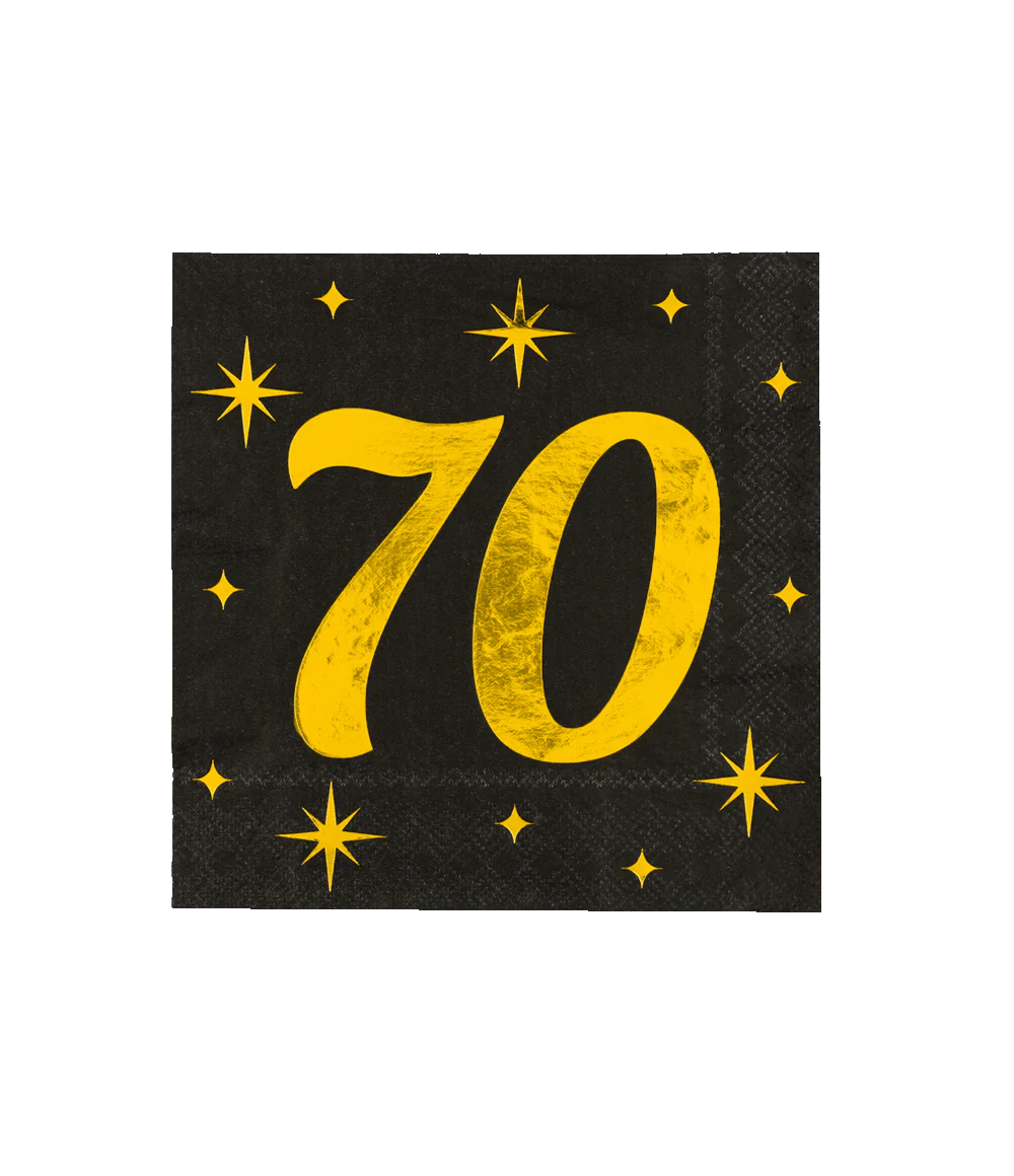 Deze 70 Jaar Servetten Zwart Goud 19 Centimeter 16 Stuks zijn niet alleen praktisch, ze zijn ook nog eens erg leuk om een tafel feestelijk te decoreren bij een 70e verjaardag. Deze servetten (17 x 19cm) zijn te bestellen per 16 servetten in een pak.