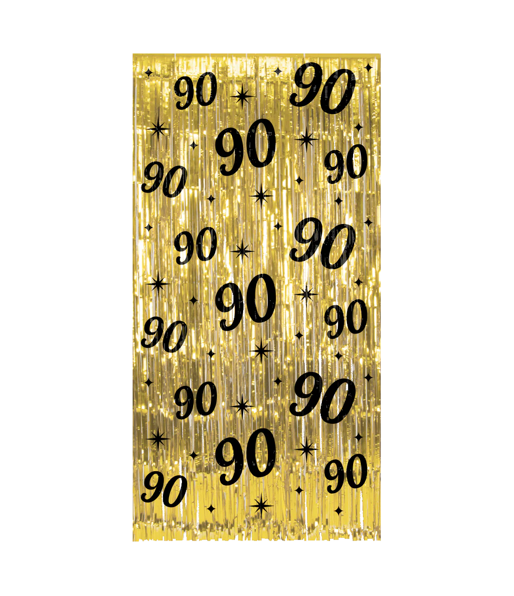 Met de 90 Jaar Deurgordijn Goud Zwart haal je unieke feestversiering in huis. Hang het aan een deur of wand en creëer direct een feestelijke sfeer!
