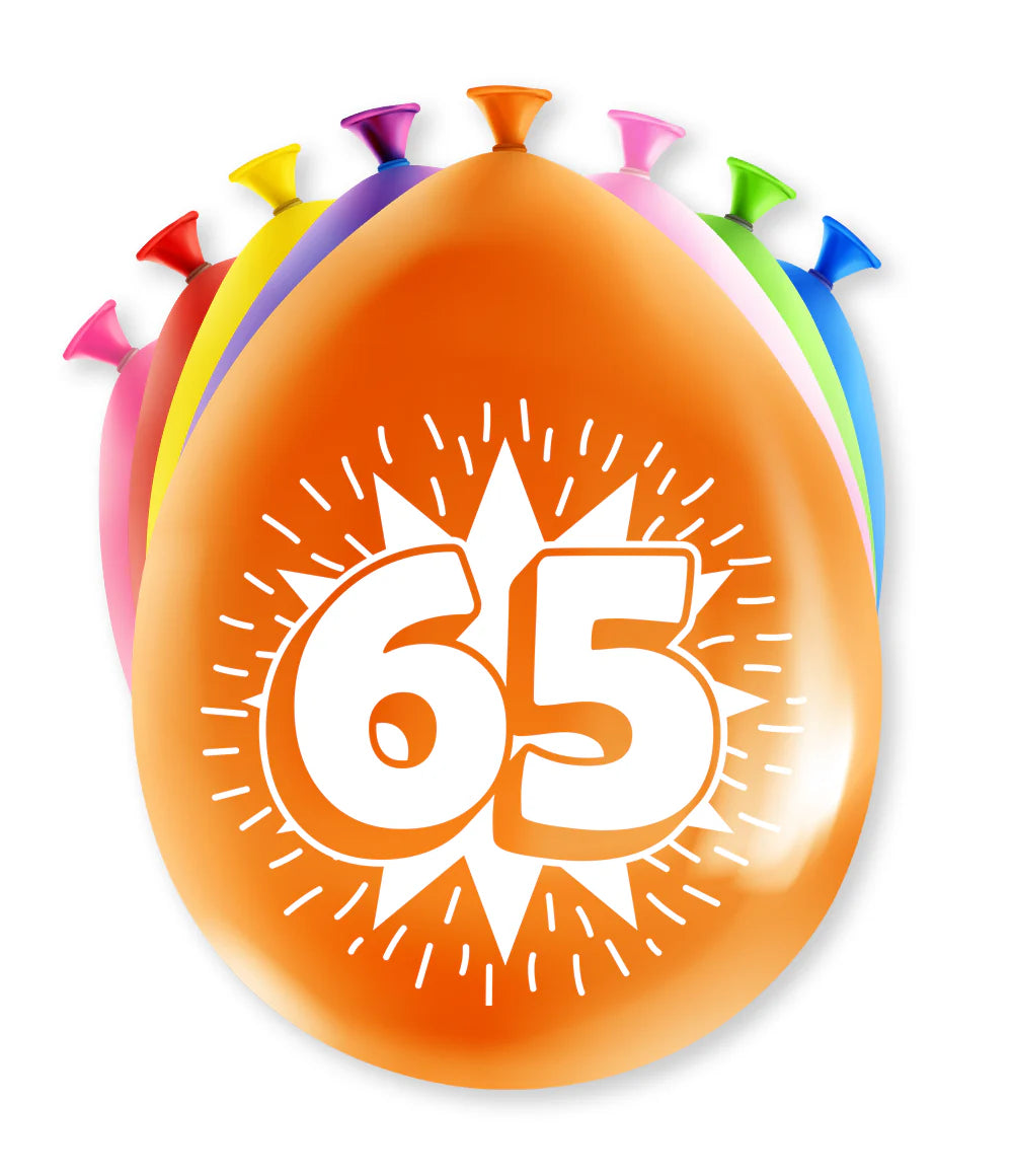 Verpakkingsinhoud: Ballonnen 65 Jaar Hoera 30 Centimeter 8 Stuks