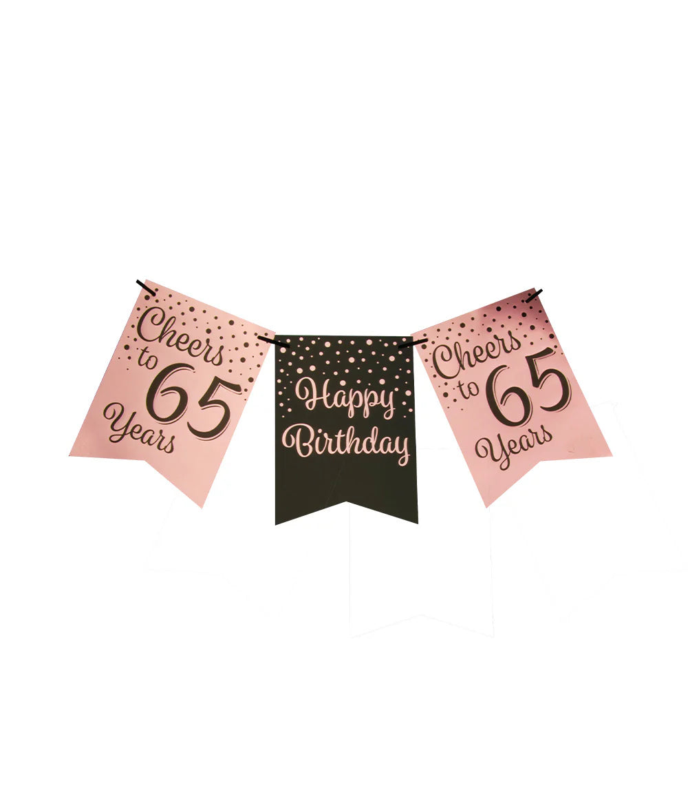 Verpakkingsinhoud: Banner 65 Jaar Roze Zwart 6m