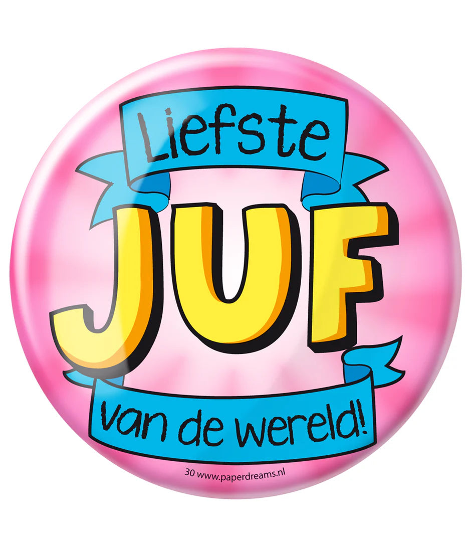 Verpakkingsinhoud: Button Liefste Juf van de Wereld 10,2cm