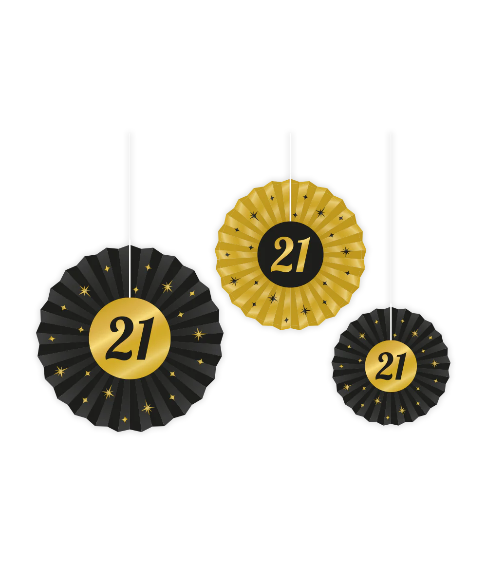 Verpakkingsinhoud: Papieren Waaiers 21 Jaar Set 3-delig
