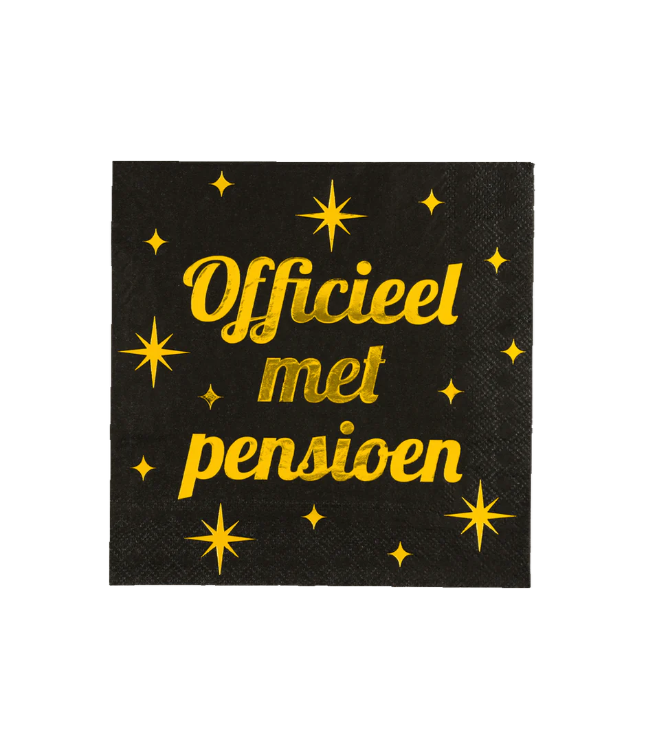 Deze classy party napkins - Pensioen zijn niet alleen praktisch, maar ook een feestelijke toevoeging aan de tafel bij een pensioenfeest. De servetten zijn ideaal voor het decoreren van de feesttafel en perfect te combineren met andere feestversiering uit de classy collectie.