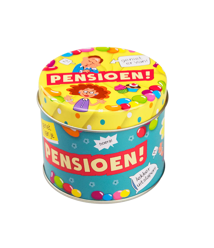 Verpakkingsinhoud: Snoepblik Pensioen 9cm