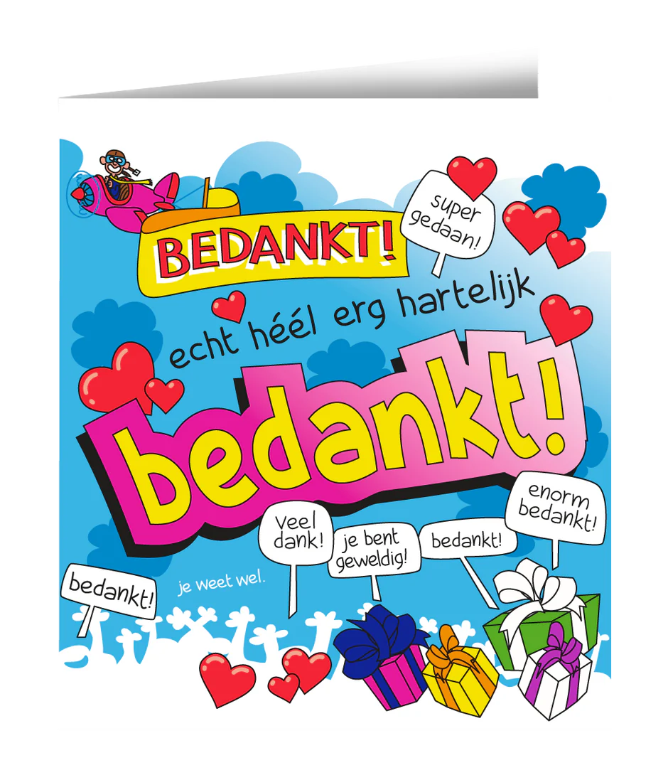 Verpakkingsinhoud: Wenskaart Bedankt 16,5 cm